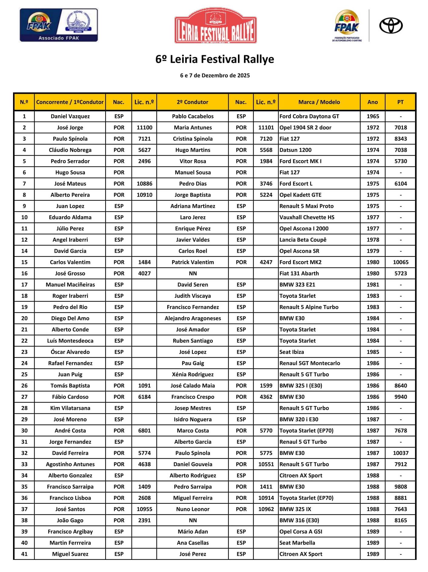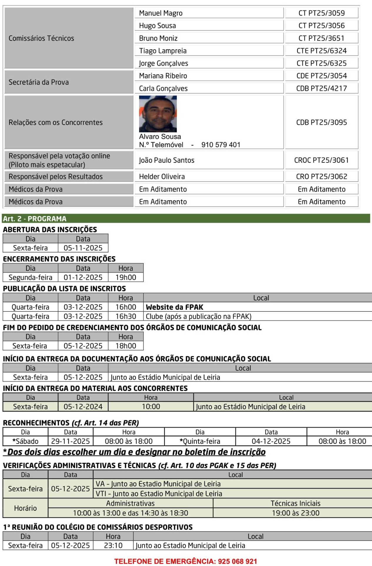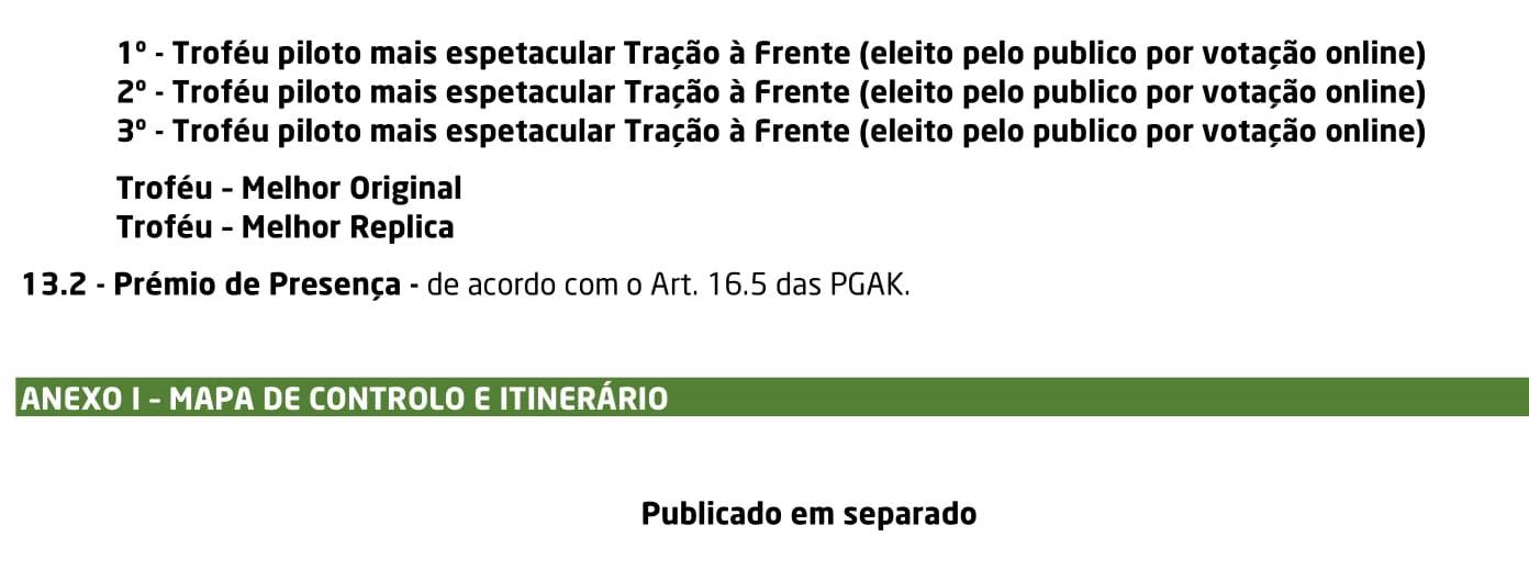Lista de Inscritos + Aditamento N.º 1 + Regulamento Particular + Mapa de Controlos e Horários + Declaração FPAK + Declaração Ageas