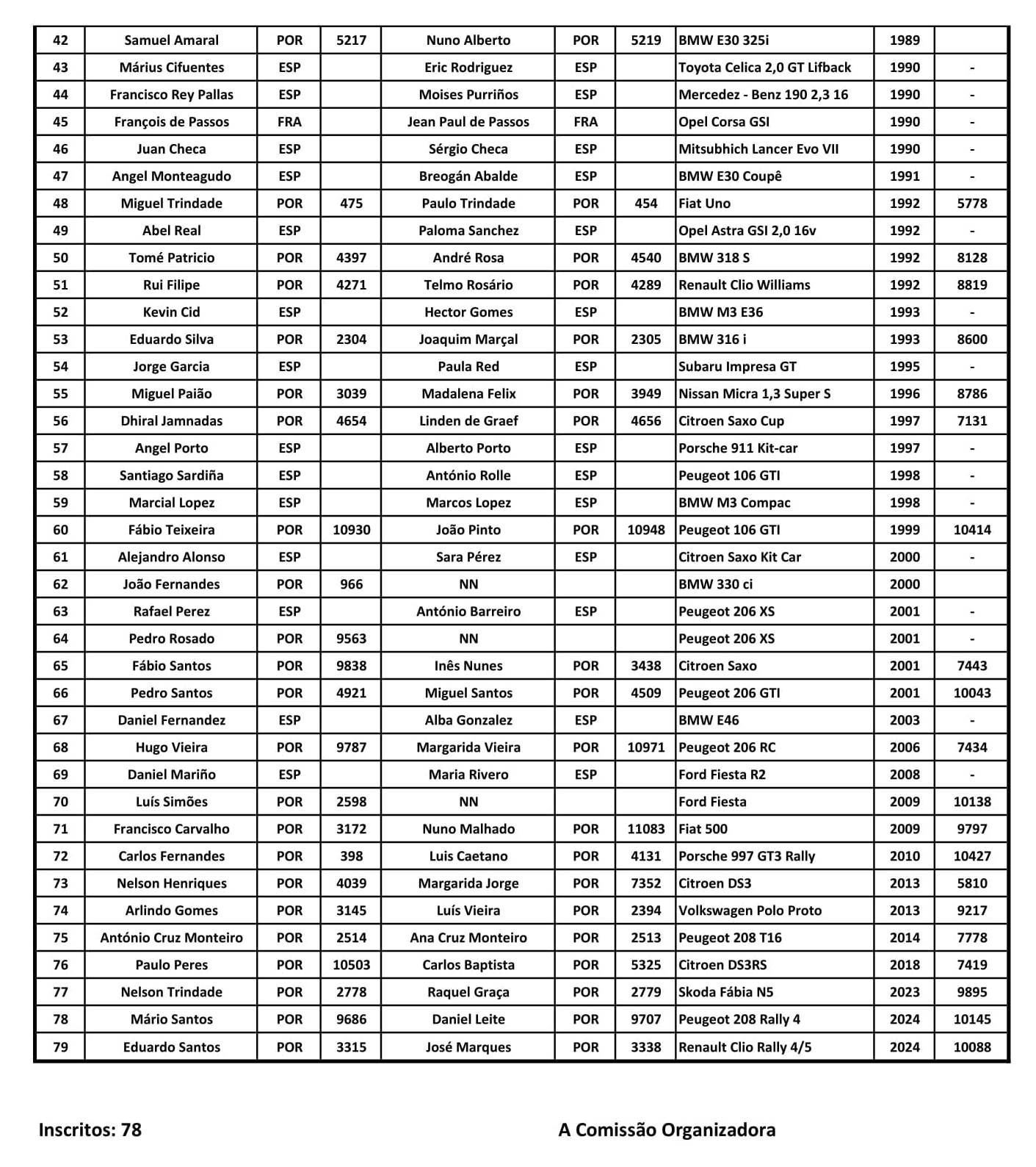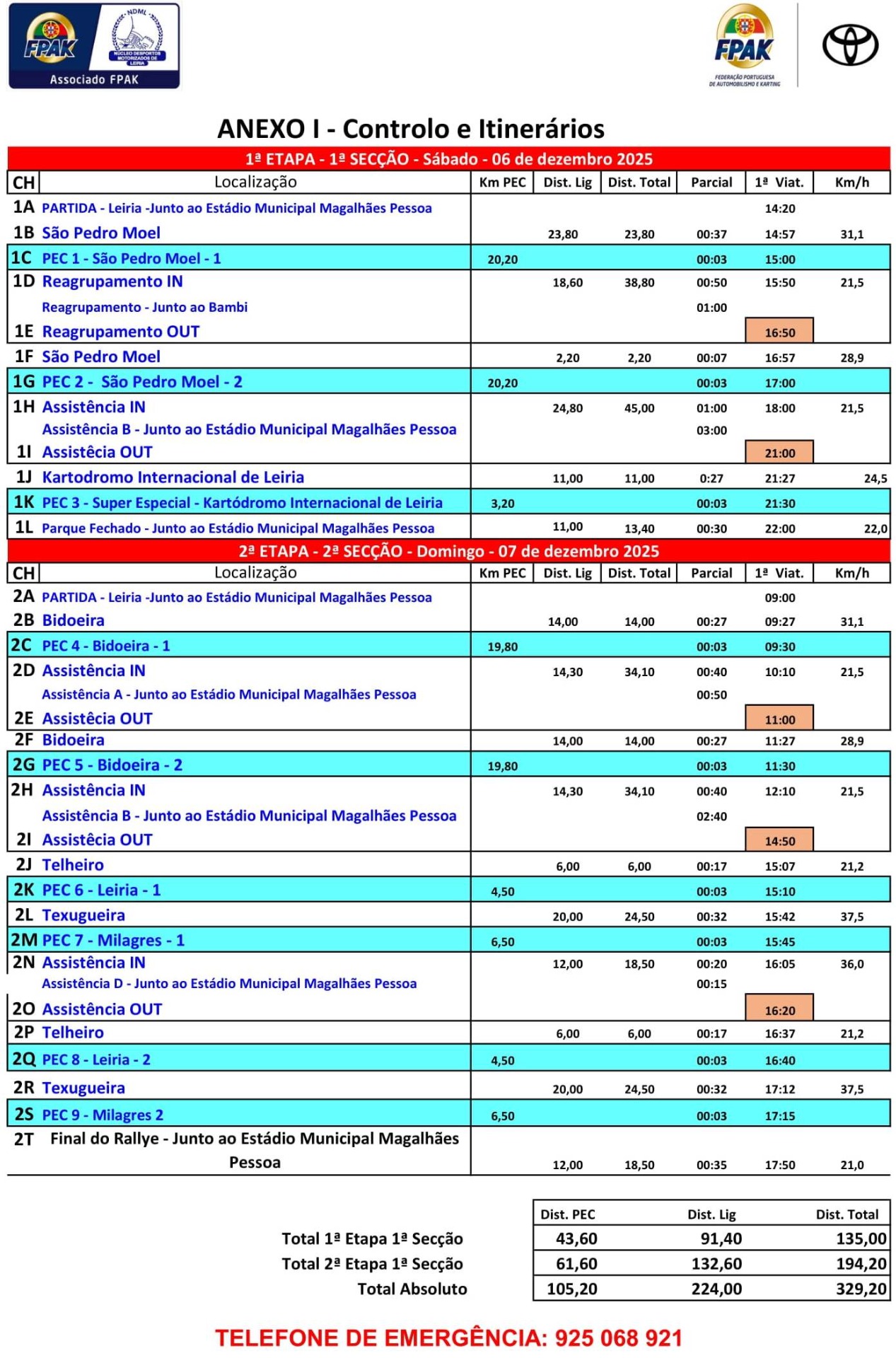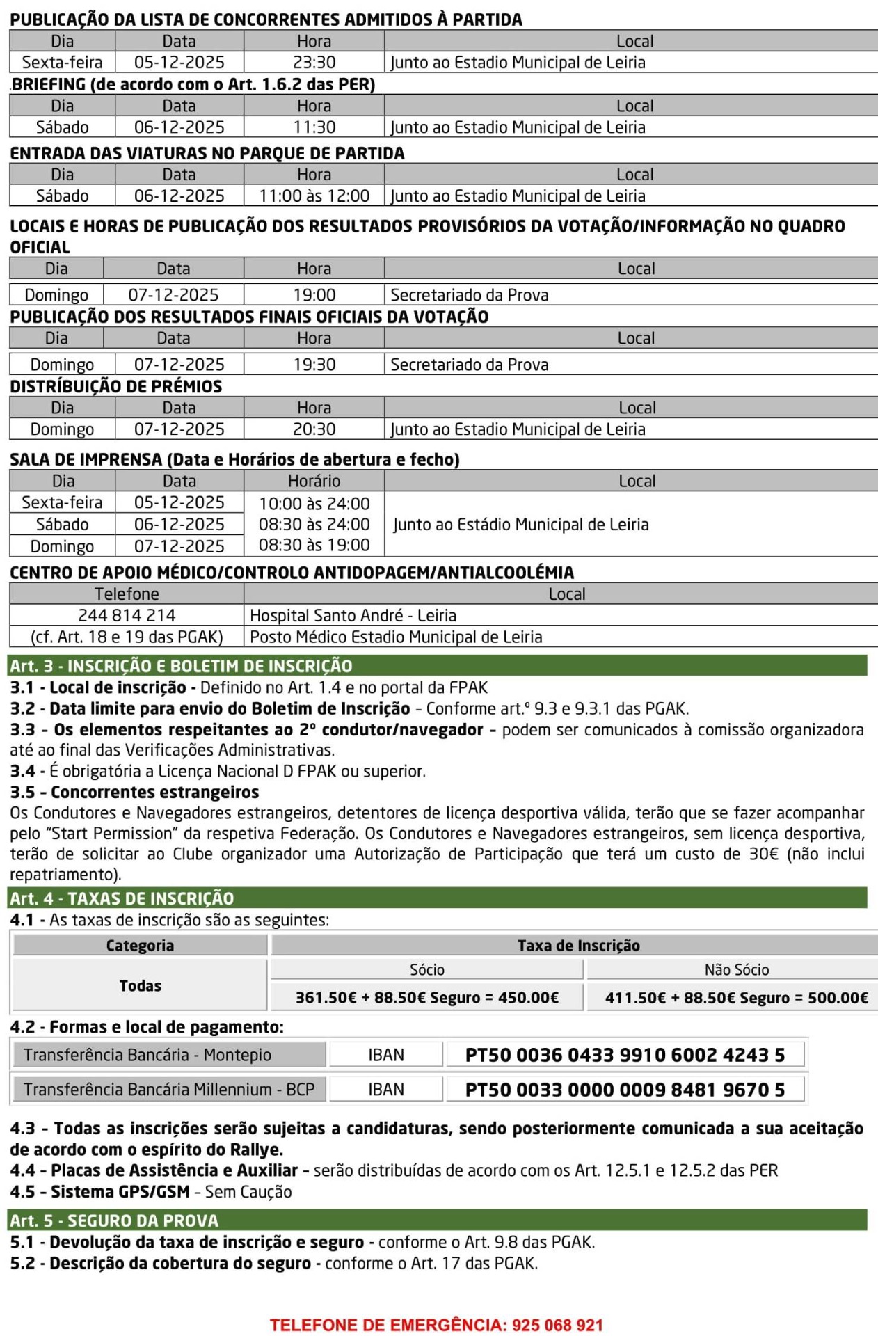 Lista de Inscritos + Aditamento N.º 1 + Regulamento Particular + Mapa de Controlos e Horários + Declaração FPAK + Declaração Ageas