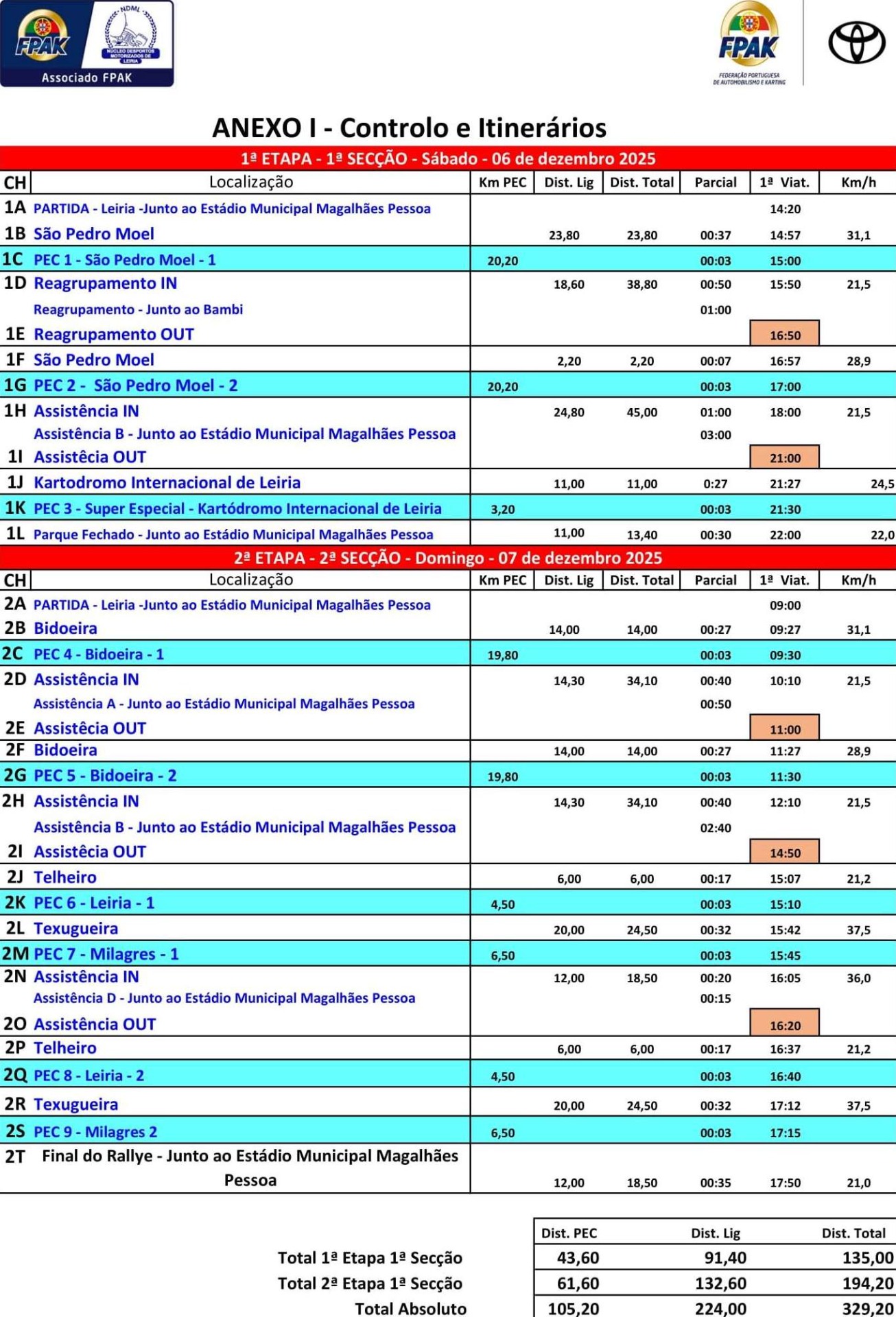 Mapa de Controlos e Itinerários + Mapas das Classificativas